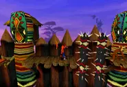 En este nivel hay tortugas que se pueden usar para rebotar una vez que se salta sobre ellas y monos que ruedan de un lado a otro y que se pueden girar o saltar sobre ellos. También hay miembros de la tribu con escudos que se deben saltar, lo que les obliga a agacharse y cubrirse desde arriba, lo que da al jugador tiempo para girar al miembro de la tribu mientras está vulnerable. Si Crash es golpeado por un miembro de la tribu, este lo derribará sin control. Hay plantas devoradora de hombres que se comerán a Crash en un instante si Crash no las gira. También hay pozos en llamas y postes con púas que Crash debe evitar o se quemará o morirá. Estos queman/empujan hacia abajo/arriba repetidamente cada pocos segundos.