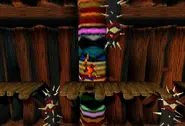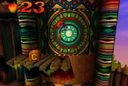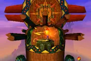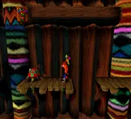 El nivel es completamente de desplazamiento lateral y lleva a Crash por varias plataformas elevadas de madera mientras escala una gigantesca puerta de madera. Crash deberá ascender varios pisos de la puerta para llegar al punto final. Para llegar a las zonas más altas del nivel, deberá usar una combinación de cajas de rebote de hierro y plataformas especiales de madera que deberá girar para acceder a ellas. La puerta también está llena de una amplia gama de trampas y enemigos. Algunos de estos incluyen pilares con pinchos que perforarán a cualquier enemigo desprevenido que sea descuidado y plataformas especiales que expulsan llamas. También hay numerosos enemigos custodiando los caminos, especialmente los nativos escudo. Además, Crash se encontrará con un extraño terreno de una superficie verde resbaladiza, que le hará resbalar de la plataforma si permanece allí demasiado tiempo.