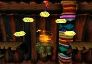 - Es posible llegar al camino de la gema amarilla sin ella en ambas versiones del juego. En el juego original, la tortuga junto al tronco con pinchos se puede usar para subir a las paredes invisibles del nivel. En la N. Sane Trilogy, se puede permanecer de pie sobre los bordes de la plataforma de teletransporte el tiempo suficiente para saltar al otro lado.